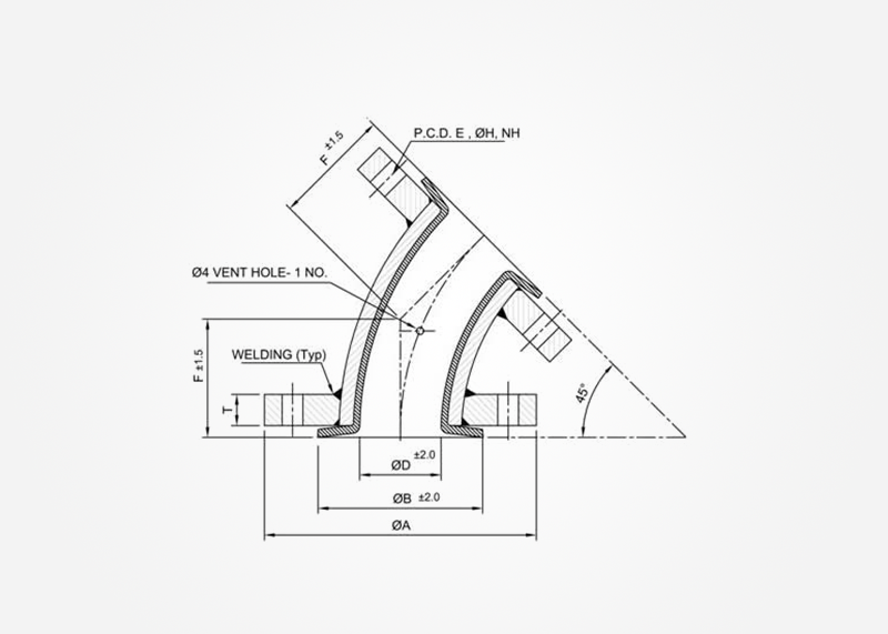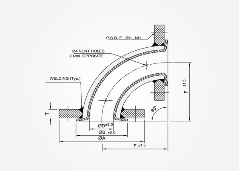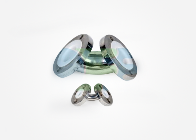 | Description | Available in PTFE, PFA, FEP , PVDF , PP and HDPE materials. PTFE Lined Carbon steel 90° & 45° Elbow F to F as per ASA 150# & Flange drilling as per customers requirements and specifications. |