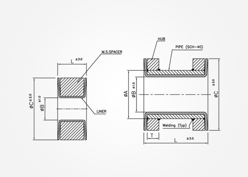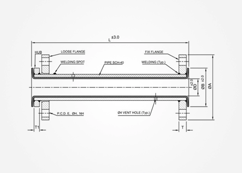 | Description | PTFE lined C.S spool pipes with one and fixed flange and other end loose flange with stub end |